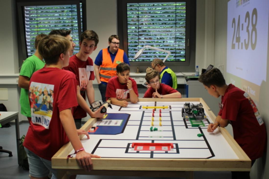Dann hatten wir auch noch Glück und noch mal Glück. Am Anfang eines jeden der drei Tage klappte nämlich nichts. Entweder waren wir zu aufgeregt und bekamen deshalb nichts gebacken. Oder der Mindstorms-Stein verabschiedete sich 5 Minuten vor Abgabe des Bots, und wir mussten ihn gegen einen neuen austauschen. Mit Schiri-Erlaubnis natürlich, aber mit dem ganzen Drum und Dran hat das wirklich lange gedauert. Wir haben dennoch an den beiden Wettkampftagen zwei von fünf Läufen perfekt hingekriegt. Am Ende belegten wir den 13. Platz bei den Juniors und waren damit mehr als zufrieden. Der Wettkampf lief für uns in seiner Dramatik und im Ergebnis supergut.