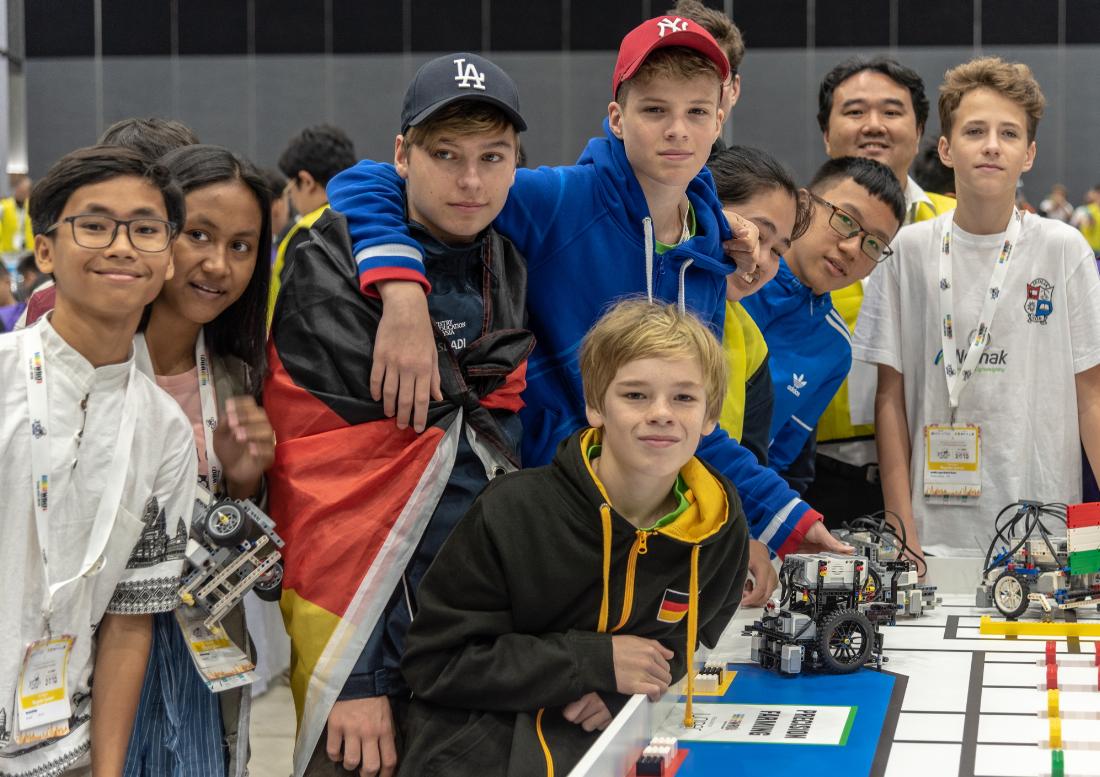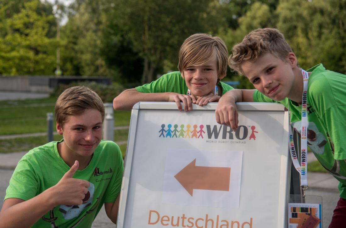 Zwei von uns hatten nämlich schon 2016 am Weltfinale in Indien teilgenommen, Yannik aber nicht. Wir starteten 2016 in der Regular Elementary, Yannik war da ein Jahr zu alt. Trotzdem gehörte er schon zu den Pirates, zum Beispiel bei unserer Teilnahme an der FLL 2016. Und Yannik begleitete uns auch auf das Deutschlandfinale der WRO nach Ludwigshafen, als mentale Unterstützung. Wir wurden dort tatsächlich Zweite und waren damit qualifiziert für Delhi. Aber Yannik musste zu Hause bleiben. Er war ja zu alt und nicht in unserem Team.