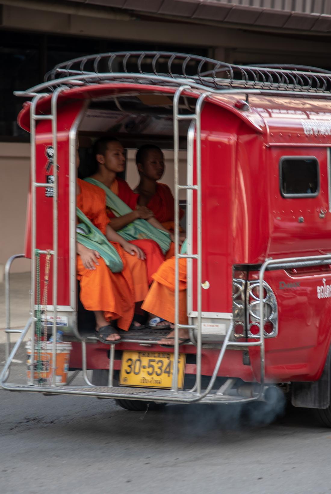 Ja, und dann kam: Chiang Mai. Wir waren insgesamt 9 Tage in Thailand. 2 davon in Bangkok, 7 in Chiang Mai. Das Land selbst war unser nächster Traum. Das Klima! Die Menschen wahnsinnig busy, die vielen Klöster, die roten Gruppen-Taxis, und ... das Essen. Draußen essen, bei Nacht, es ist schön warm, und das Essen selbst: krass lecker. Großartig. Das war einfach nur schön da.