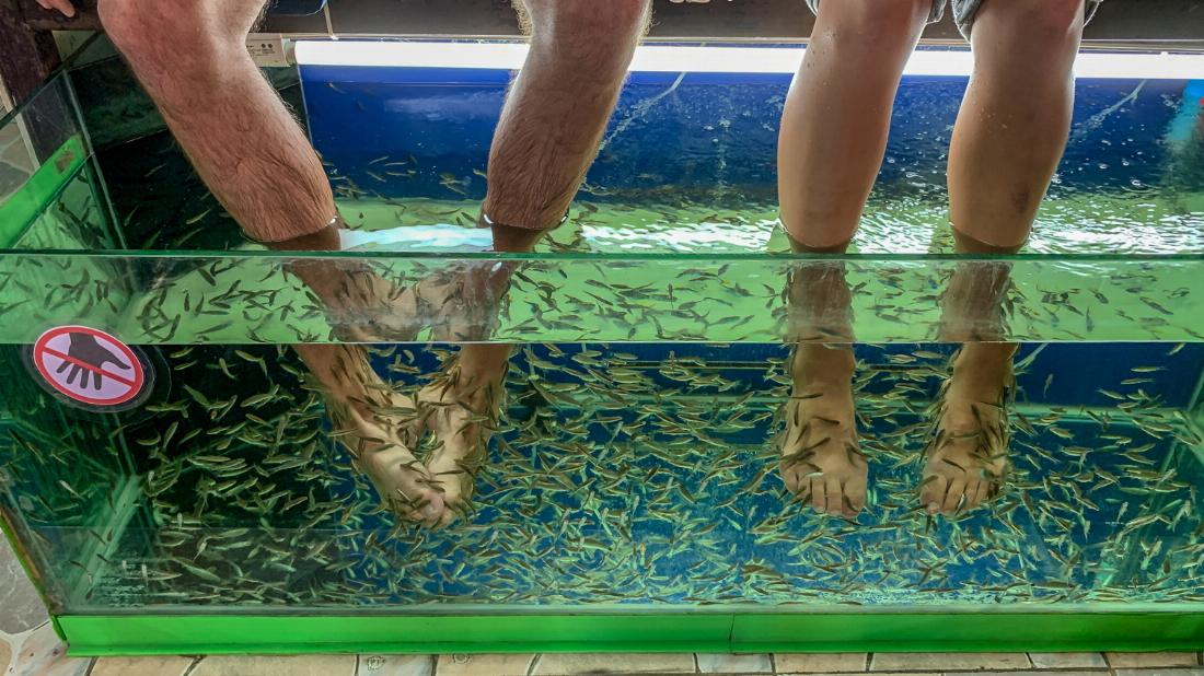 An den Tagen vor dem Wettbewerb waren wir tourimäßig unterwegs. Stadtbesichtigung, Klöster und noch mehr Klöster, Essen und noch besseres Essen, der Abendmarkt. An einem Tag sind wir mit einem Fahrer in den Norden fahren, zu einer Höhle mit einem goldenen Buddha und zu einem Wasserfall im Urwald. Da haben wir gebadet, sind dann nach Hause, irgendwo vor Chiang Mai dann so ein riesiger Markt mit wieder leckerem Essen. – So vergingen die Tage.